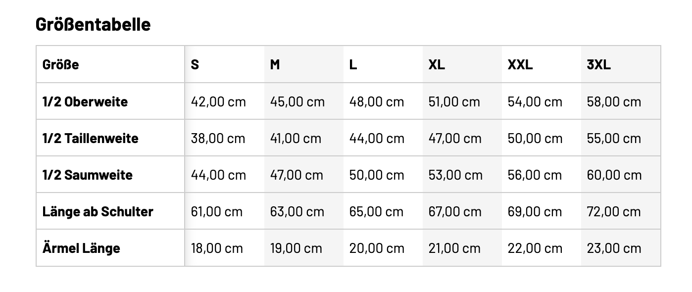 | 1/2 Oberweite | 42 | 45 | 48 | 51 | 54 | 58 |